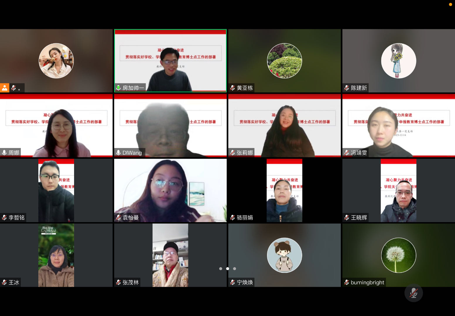 12月14日晚,我院教工第一党支部召开“凝心聚力共奋进,贯彻落实好学校、学院关于申报教育博士点工作的部署”政治学习会。在教工第一党支部书记周娜老师带领下,教工第一党支部全体党员老师首先全面、系统学习了学校、学院对申报教育博士点的工作部署及要求。自由发言环节,大家畅谈对学校、学院关于申报教育博士点工作部署及要求的理解认识及个人下一步工作打算。大家一致表示,通过学校、学院对申报教育博士点工作的部署安排,更加深切感受学校、学院对教育学专业的期待与重视,看到教育学专业发展的巨大潜力,一定坚定信心、开拓奋进,从自我做起、从日常教学、科研做起,以实际行动不折不扣把学校、学院对教育博士点申报工作的决策部署落实到位。学院党委书记房书记总结发言,要求大家把贯彻落实学习贯彻学校、学院关于申报教育博士点的工作部署同个人教学、科研工作紧密结合起来,落实好各项要求,统筹做好各项工作。房书记勉励大家,继成功攀登“升大学”这座山峰后,我们要继续紧密团结在学校、学院中心协力奋进攻克“申报教育博士点”的山峰。