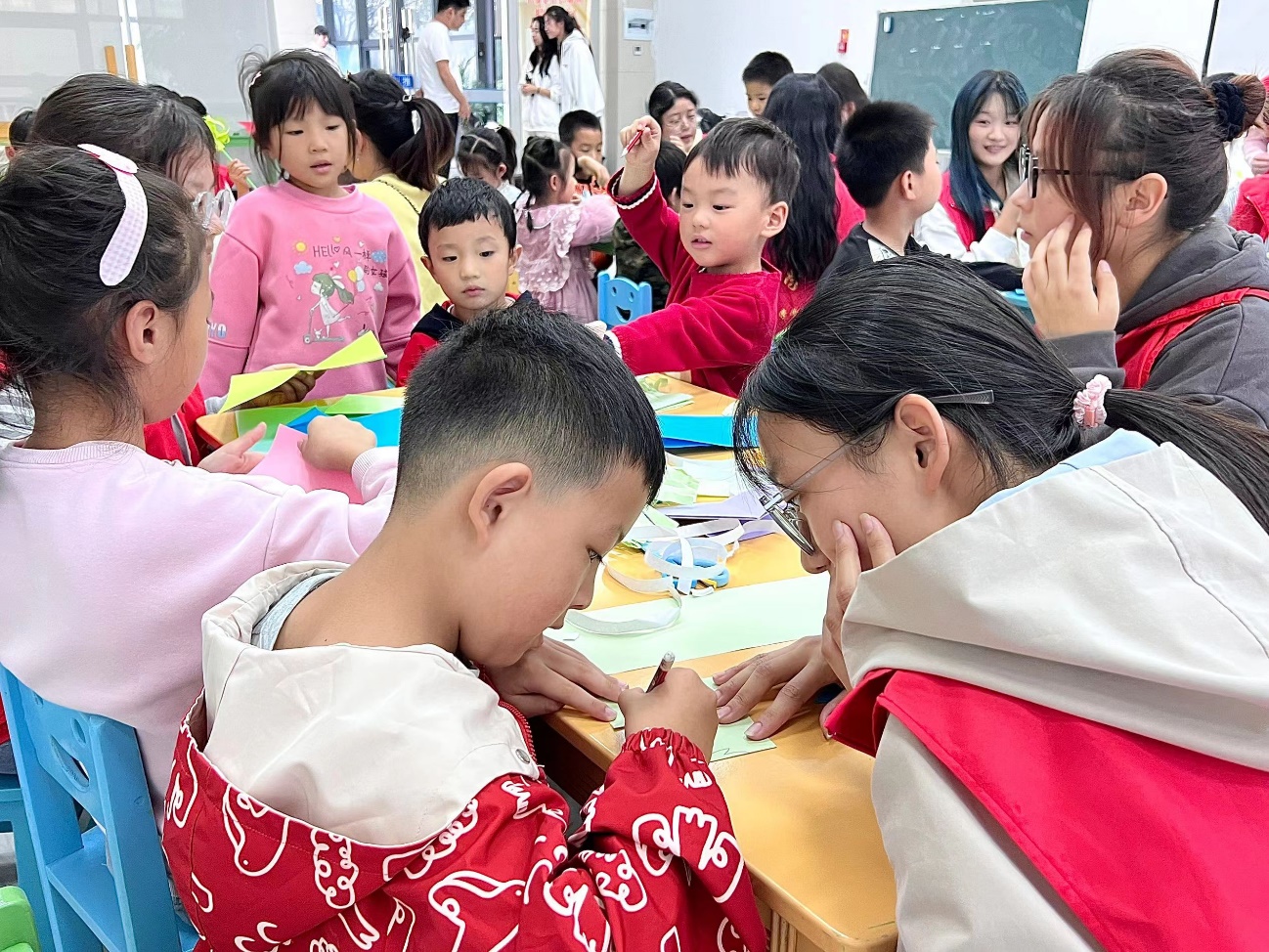 时间:2023-12-21 09:12:35 来源:教科院新闻宣传中心 作者:吴宇熙 崔佳怡 阅读: 次为深入学习贯彻党的二十大精神,推动高质量文化建设,不断增强全体市民文化自信,信阳市图书馆、信阳师范大学教育科学学院携手开展“青苗课堂”志愿服务项目,切实开展各类手工活动,加强对城乡社区青少年群体在思想引领、学业辅导、健康生活、科技创新、艺术素养等方面的帮助。教育科学学院分团委书记牛洁楠担任活动指导老师。