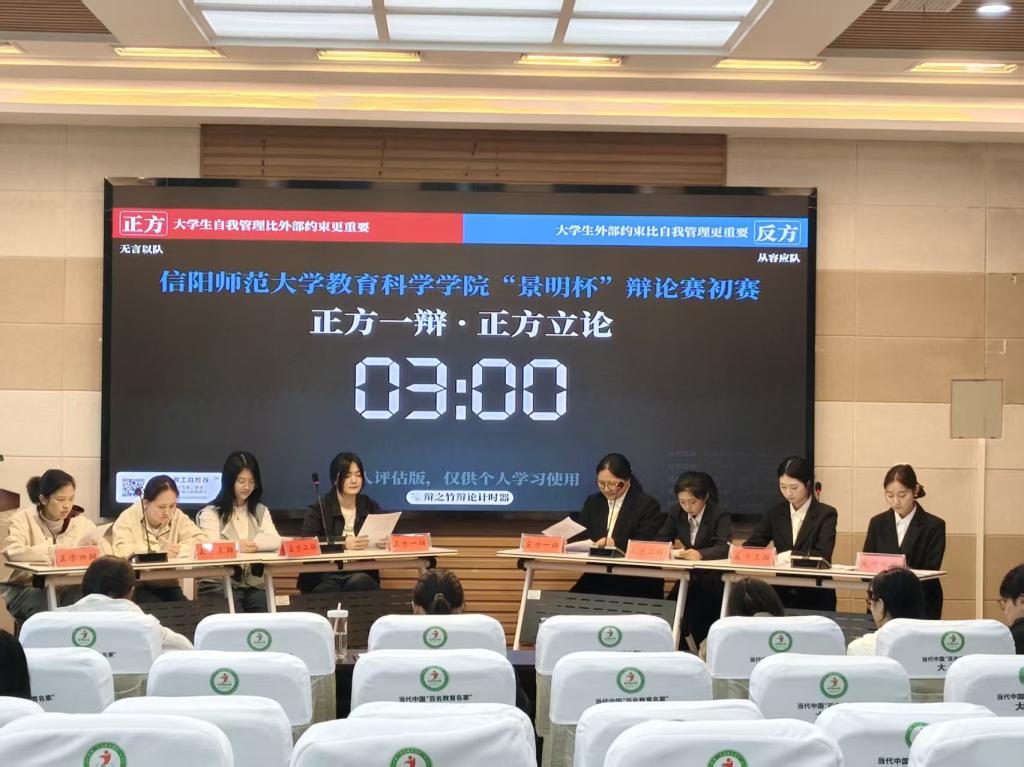 时间:2026-04-03 13:17:41 来源: 作者:任梦琳 阅读: 次为激发学生批判性思维,锤炼语言表达与逻辑思辨能力,丰富校园文化生活,4月3日,由教育科学学院主办、“谭山思源”辅导员工作室承办的“景明杯”辩论赛初赛于教科楼301会议室顺利举办。本次比赛由院团委书记杨艺卓,专职辅导员刘然然及主席团成员担任评委,姜可欣主持。