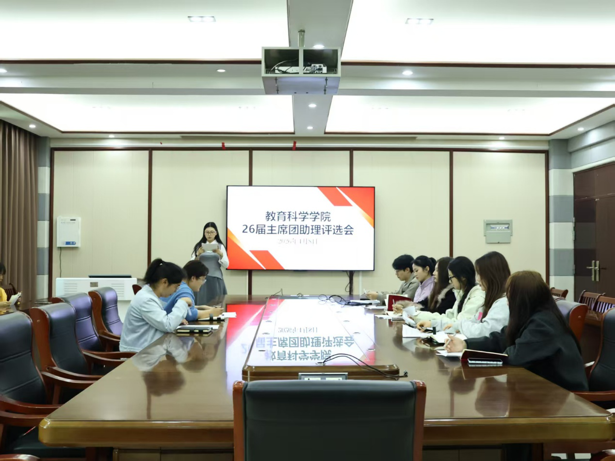 时间:2026-04-10 07:17:22 来源:教科院新闻宣传中心 作者:吕萌琰 阅读: 次为选拔优秀学生骨干,夯实学院学生工作基础,4月9日,教育科学学院2026届主席团助理评选会顺利开展。学院团委书记杨艺卓、专职辅导员刘然然、2026届主席团成员出席本次活动,由张馨雅主持整场评选,活动全程秉持公平、公正、公开的原则进行。